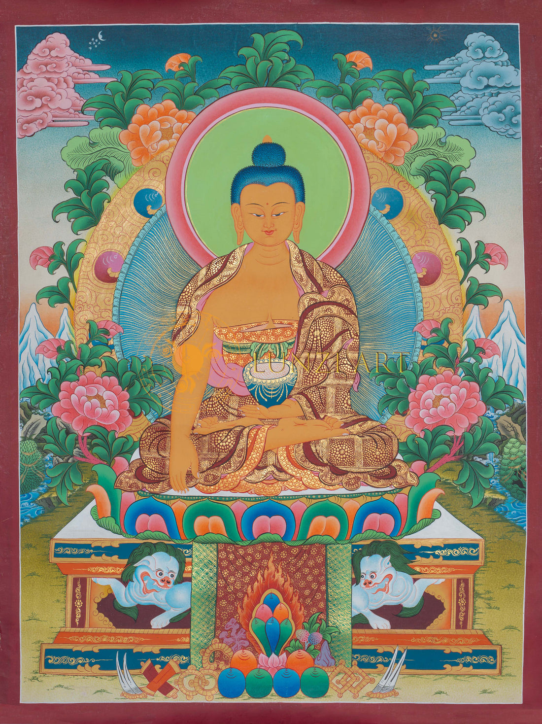 This beautiful thangka, representing Shakyamuni Buddha, the historical Buddha, is a work of art made...