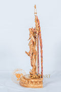 This statue of Vajra Yogini was handcrafted by skilled craftsmen working with Lunzi Art. The statue is cast in a fine copper using the traditional lost wax method, then carefully hand-carved with intricate patterns, polished to a dazzling shine, and fully plated with 24K gold.