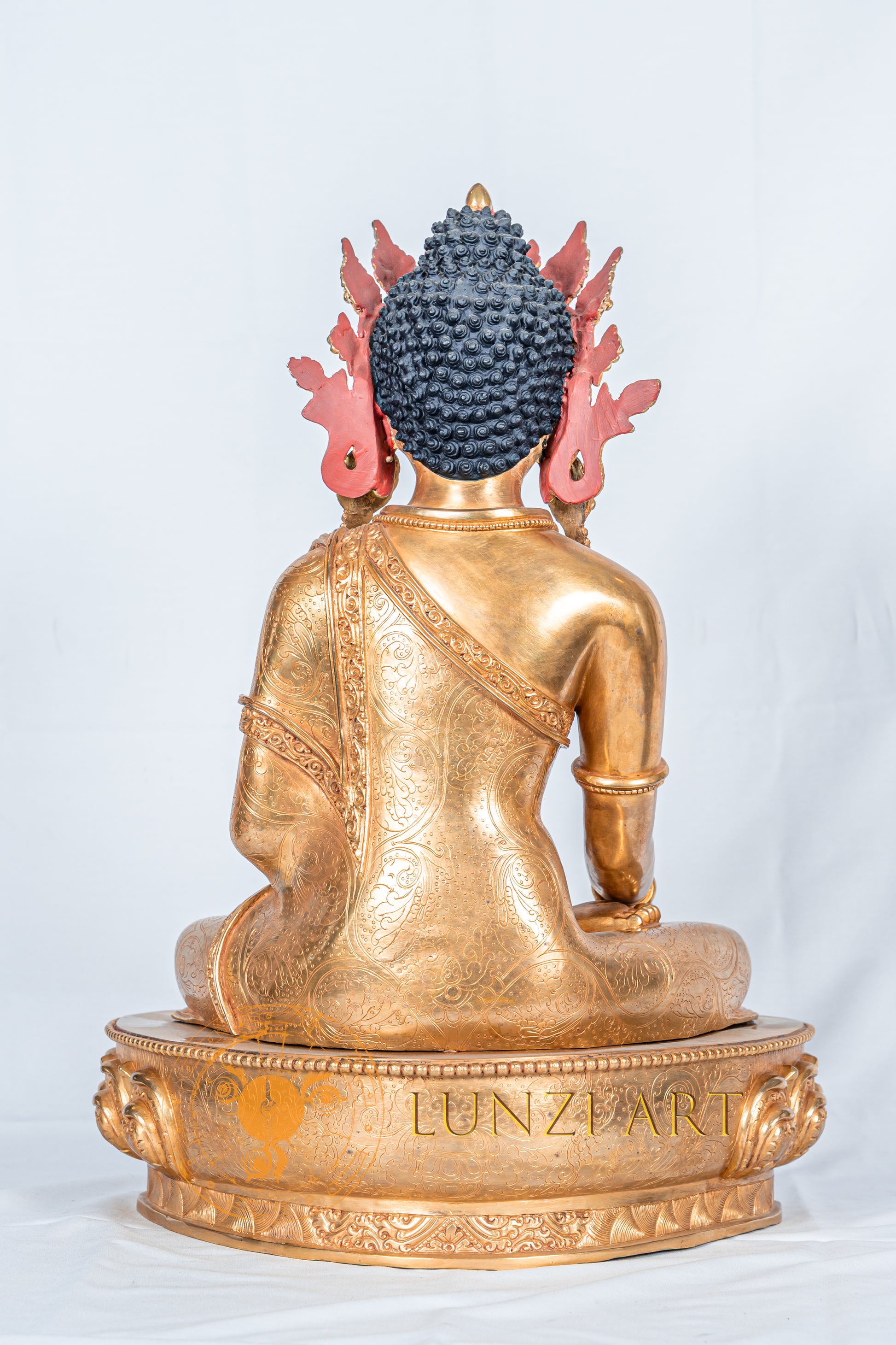 This Shakyamuni Buddha statue was handcrafted by skilled craftsmen working with Lunzi Art. This Shakyamuni buddha statue is made of refined copper and fully plated with 24k gold using the traditional lost wax method.