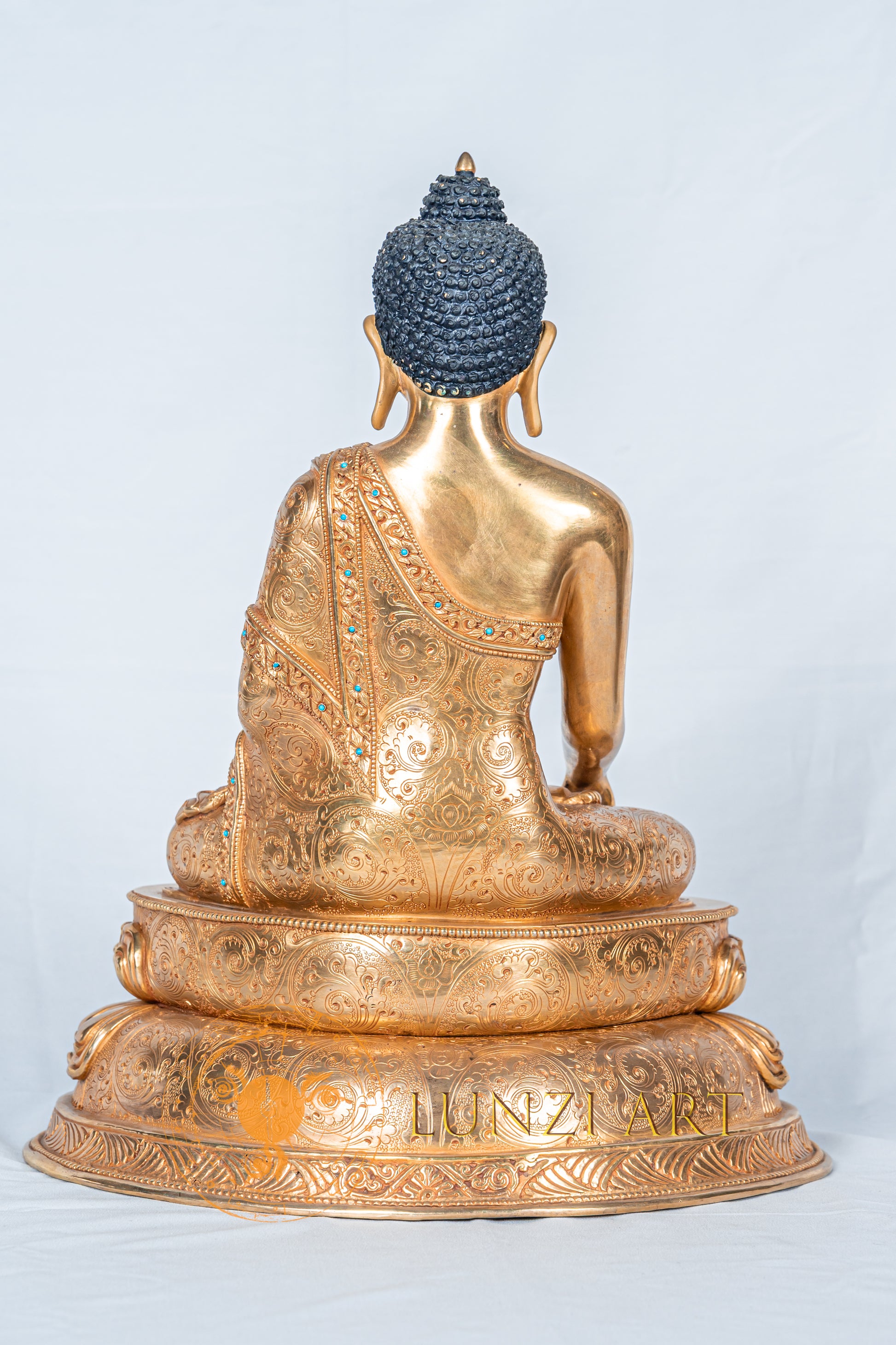 This statue of Shakyamuni Buddha was meticulously handcrafted by skilled craftsmen working with Lunzi Art. Made of fully gold-plated copper, it has been beautifully hand-painted to highlight the intricate details and lifelike expression of the master. Created using the traditional lost-wax casting method and carefully hand-carved with exceptional precision.
