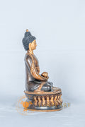 This statue of Amitabha Buddha was meticulously handcrafted by skilled craftsmen working with Lunzi Art. The statue is made of high-quality copper and half gold-plated, resulting in a striking, radiant appearance. Using traditional techniques, the artisans employed the lost-wax casting method and hand-carved every intricate detail with great precision.