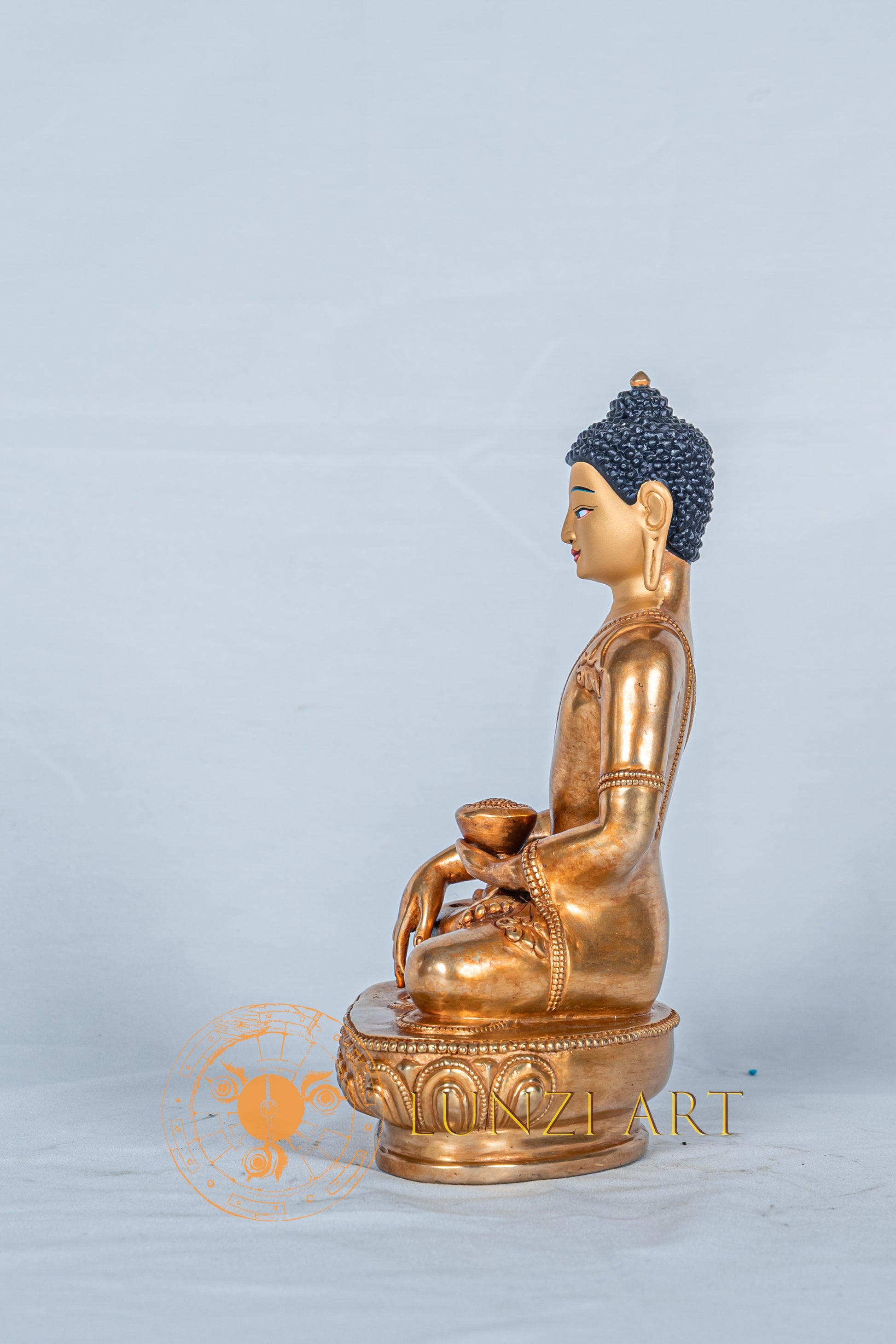 This statue of Shakyamuni Buddha was meticulously handcrafted by skilled craftsmen working with Lunzi Art. Made of fully gold-plated copper, it has been beautifully hand-painted to highlight the intricate details and lifelike expression of the master. Created using the traditional lost-wax casting method and carefully hand-carved with exceptional precision.