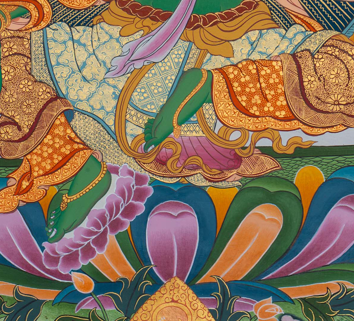 For requests for consecrations/blessings, we can take the thangka to monasteries or Rinpoches from the nearby Boudha Stupa. We kindly ask you to offer $30 for the monasteries for blessings/consecration services.