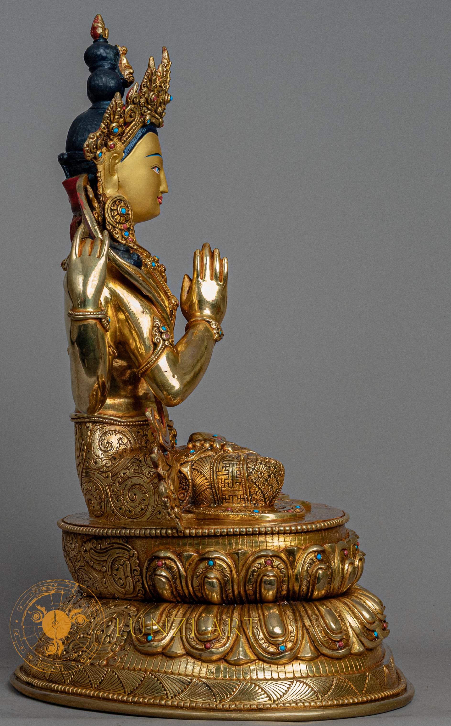 Four Armed Chenrezig Statue | Fully Gold-Plated Copper