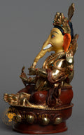 This exquisite statue of Ganesh was masterfully handcrafted by the skilled artisans working with Lunzi Art. Made of high-quality copper and partially gold-plated, it features delicate hand-painting that captures the serene yet powerful expression of the deity. Every intricate detail, from his ornate crown to his symbolic attributes, is finely crafted using the traditional lost-wax casting technique and meticulous hand-finishing.