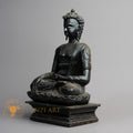 Experience the grounding energy of the "Awakened One" with this masterfully hand-carved Shakyamuni Buddha statue, sculpted from rare and sacred Karma wood. Known for its dense grain and natural aromatic qualities, Karma wood is highly revered in Himalayan traditions for its ability to hold spiritual charge and withstand the passage of time. This statue depicts the historical Buddha in the Bhumisparsha Mudra (Earth Witness gesture), capturing the pivotal moment of his enlightenment when he called upon the earth to witness his victory over delusion.