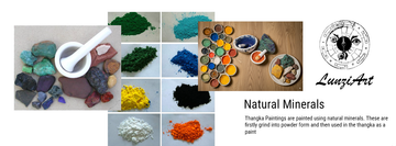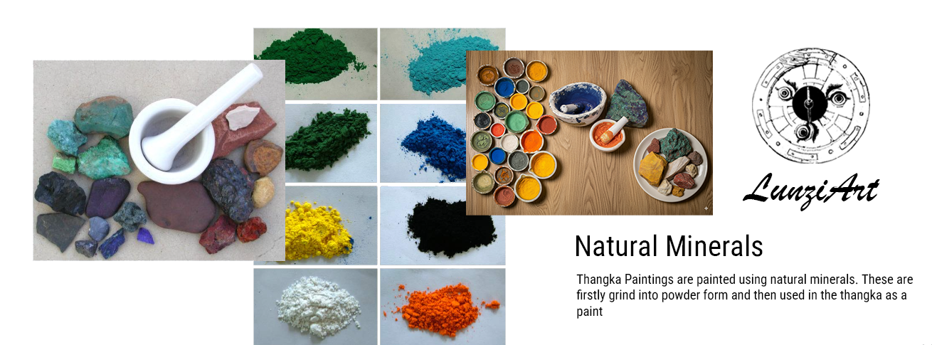 All the colors used in the thankgas are made from natural minerals. Ground into pigments, they carry the essence of the earth. Unlike artificial colors, these natural tones shine with honesty, adding depth, life, and spiritual meaning to each canvas.