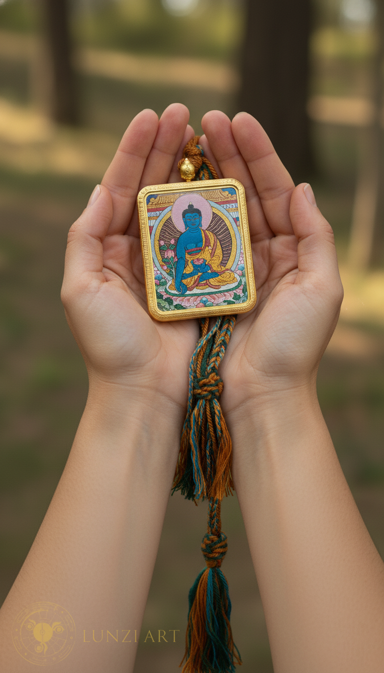A Ghau Thangka is a hand-painted, miniature Nepalese Buddhist scroll that is housed in an elaborate metal shrine. It is sometimes spelled Gau or Ghau. The living energy of enlightened deities, including Green Tara, Medicine Buddha, Mahakala, and Guru Rinpoche, is carried by this portable altar, which can be worn as a pendant or held near the heart. In contrast to regular jewellery, each Ghau Thangka is consecrated through ancient rabné (blessing) rituals by a qualified lama. The end effect is a talisman that, wherever you go, exudes healing, protection, and spiritual strength.