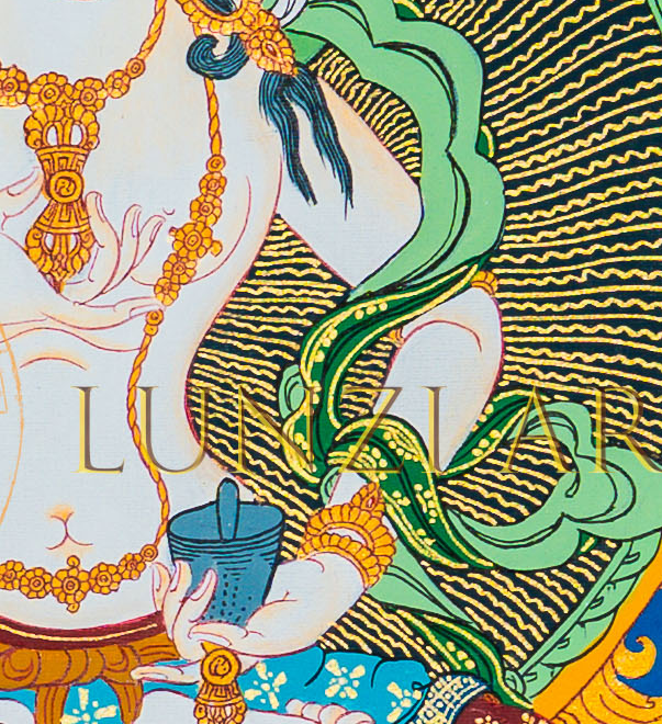 For requests for consecrations/blessings, we can take the thangka to monasteries or Rinpoches from the nearby Boudha Stupa. We kindly ask you to offer $30 for the monasteries for blessings/consecration services.