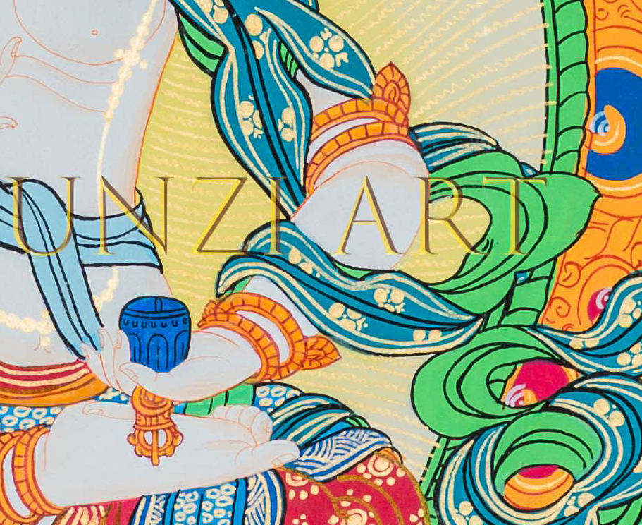 Crafted by skilled Nepali artisans, this masterpiece is hand-painted on high-quality cotton canvas using natural mineral pigments for rich, long-lasting color. This authentic devotional artwork serves as a transformative focal point for any sacred space, inviting healing, peace, and the light of renewal into your home.