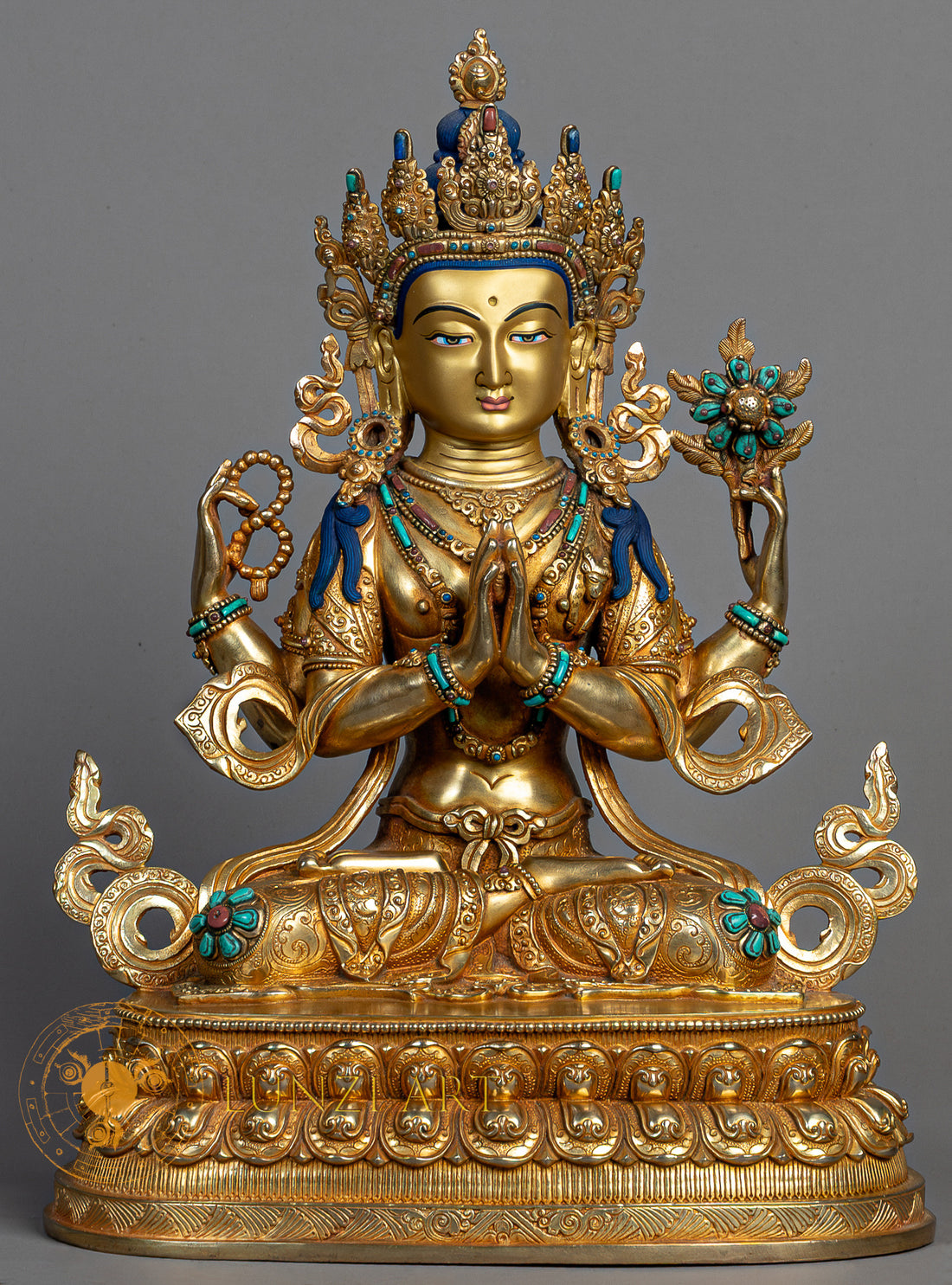 Four Armed Chenrezig Statue | Fully Gold-Plated Copper
