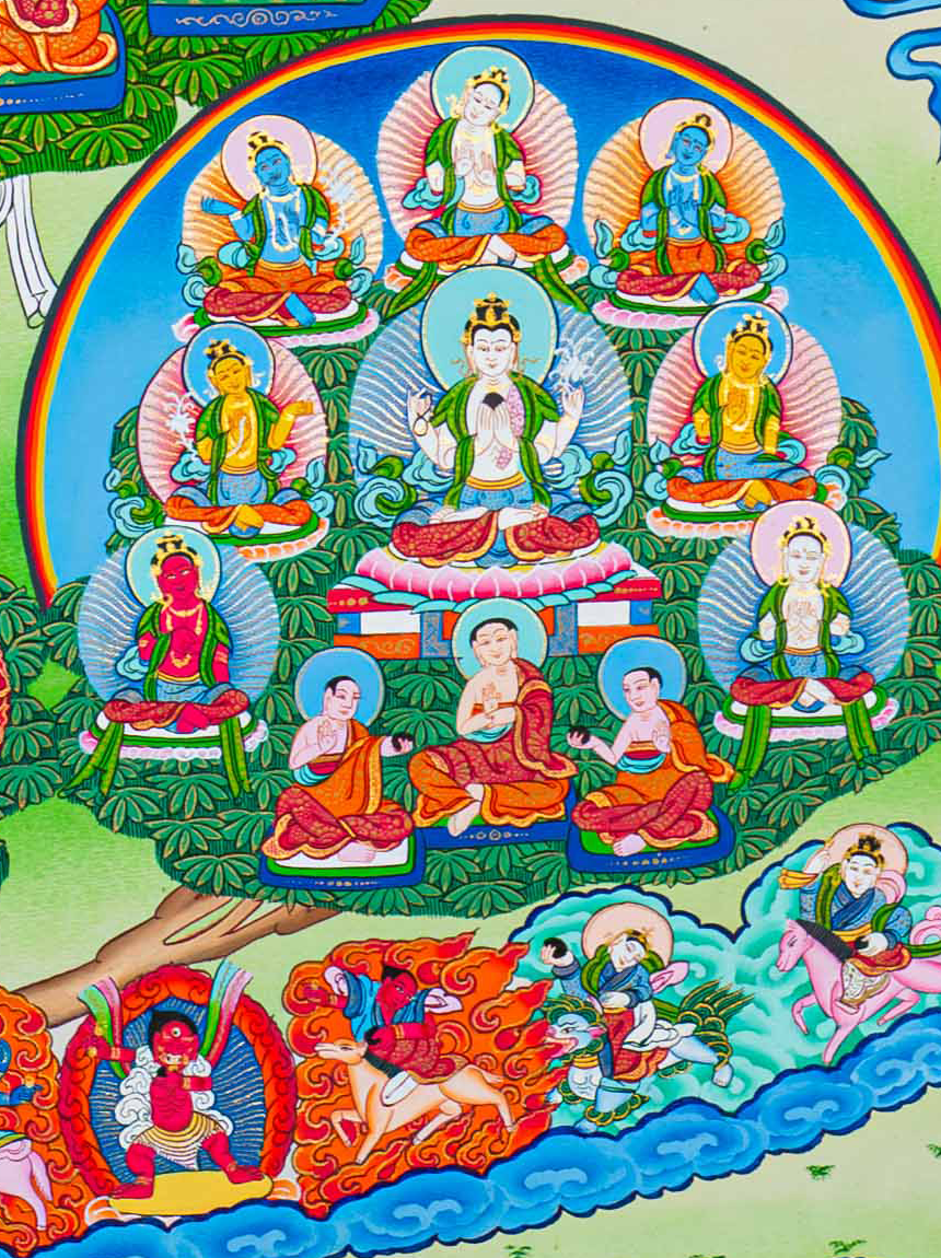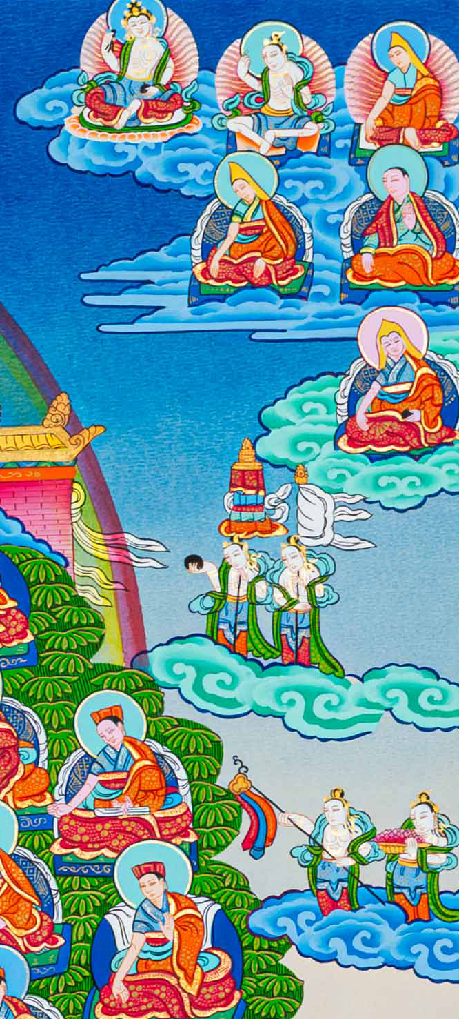 For requests for consecrations/blessings, we can take the thangka to monasteries or Rinpoches from the nearby Boudha Stupa. We kindly ask you to offer $30 for the monasteries for blessings/consecration services.