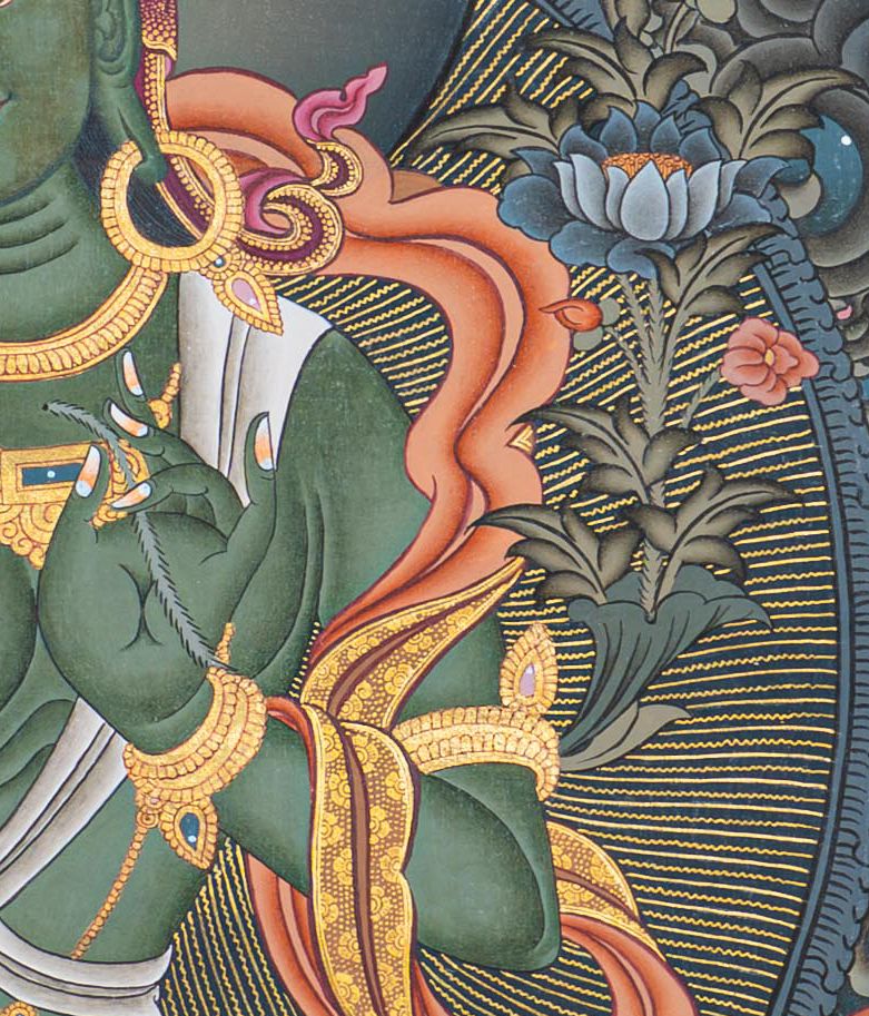Hand-Painted Green Tara Thangka